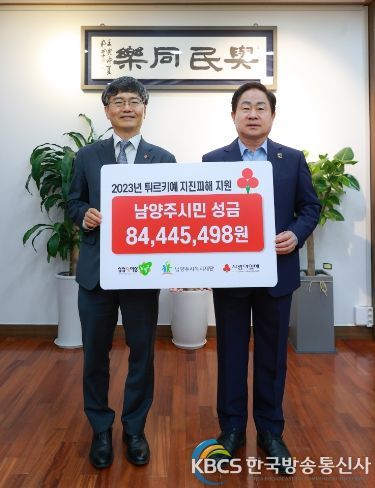한국방송통신사 관리자 기자 | 남양주시는 2일 튀르키예 지진 피해 복구를 지원하기 위한 특별 성금 84,445,498원을 경기북부 사랑의열매에 전달했다.