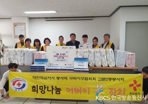 한국방송통신사 관리자 기자 | 구리시 교문2동 행정복지센터는 지난 4일 적십자봉사회 주관으로 관내 희망풍차 지원대상인 취약계층 독거노인 20세대에 이웃돕기 물품(이불·치약세트)을 전달했다.