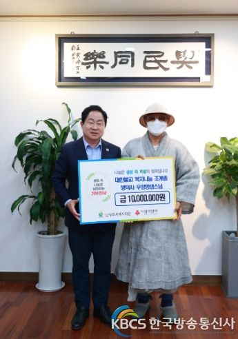 한국방송통신사 관리자 기자 | 남양주시 진건읍에 소재한 대한불교조계종 명덕사 주지 우정방생스님은 25일 가정의 달을 맞아 지역 내 어려운 이웃을 돕기 위해 후원금 1천만 원을 남양주시복지재단에 전달했다.