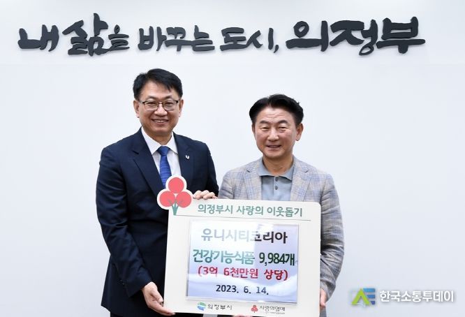 한국소통투데이 관리자 기자 | 의정부시(시장 김동근)는 6월 14일 유니시티코리아가 시청을 방문해 3억6천만 원 상당의 건강기능식품을 기부했다고 밝혔다.