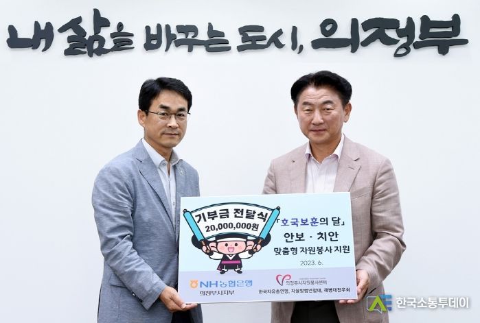 한국소통투데이 관리자 기자 | 의정부시는 6월 15일 NH농협은행 의정부시지부가 호국보훈의 달을 맞아 관내 안보‧치안단체를 위해 써달라며 의정부시자원봉사센터를 통해 성금 2천만 원을 전달했다고 밝혔다.