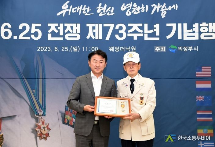 한국소통투데이 관리자 기자 | 김동근 의정부시장은 6월 23일 김풍익 전투기념비가 있는 의정부 축석령에서 열린 ‘제73주년 의정부 축석령 전투 추모식’에 참석해 호국영령에게 헌화와 분향을 했다.