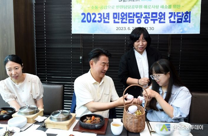 이번 간담회는 민원행정 최일선에서 각종 폭언 등에 시달리는 민원창구 직원들의 애로사항을 청취하고 사기를 진작하기 위해 마련됐다.