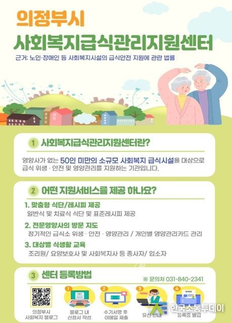 이번 센터 개소는 노인·장애인 등 취약계층에 대한 단체급식의 관리 지원을 위한 ‘노인·장애인 등 사회복지시설의 급식안전 지원에 관한 법률(사회복지시설급식법)’ 시행에 따른 것으로, 의정부시 어린이급식관리지원센터에서 통합 운영한다.