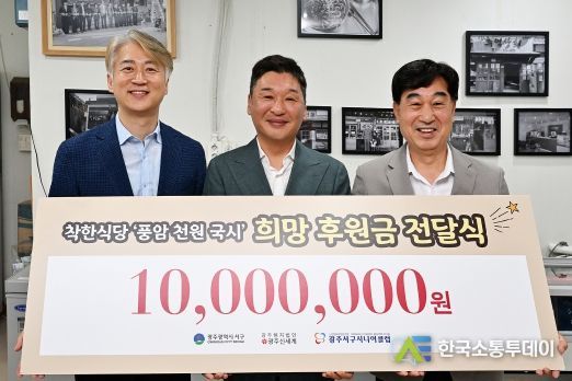 한국소통투데이 관리자 기자 | 김이강 서구청장은 20일 오전 풍암천원국시에서 광주현지법인 광주신세계로부터 풍암천원국시사업 후원금 1,000만원을 기탁받고 감사의 마음을 전했다.
