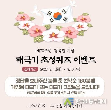정답을 맞힌 참여자 중 선착순 180명에게 게양용 태극기 또는 태극기 문양 ‘그립톡’ 중 하나를 증정한다.