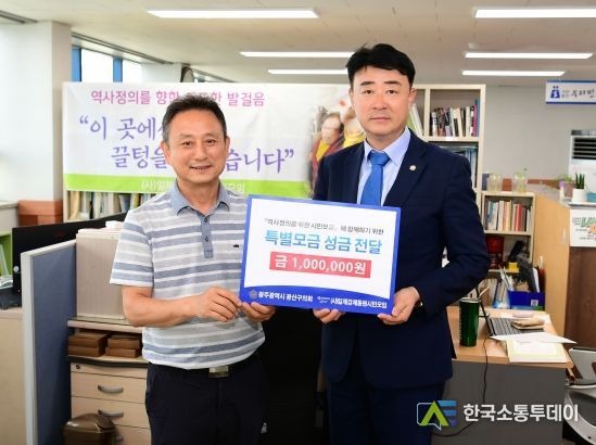 광산구의회는 8일 사단법인 일제강제동원시민모임에 방문해 ‘역사정의를 위한 시민모금’으로 모인 성금 1백만 원을 기탁했다.