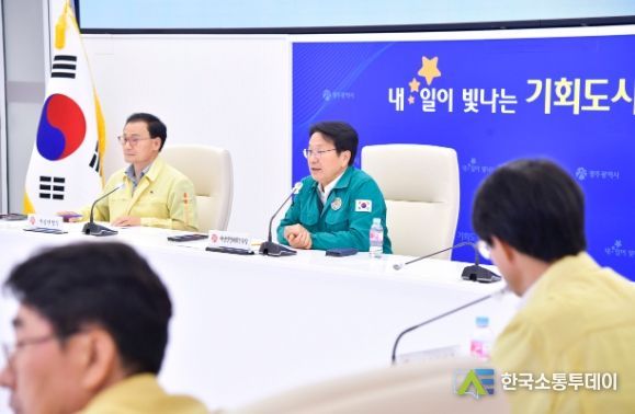 강기정 광주광역시장은 8일 오후 시청 충무시설에서 태풍 대비상황 긴급점검회의를 주재하고 5개 자치구와 부서별 중점 관리사항 및 대처계획을 점검했다.