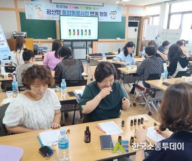 시작으로 동강대학교 교수, 대학생 등이 참여한 ‘청춘월담 지기단’이 16일 광주+광산형 통합돌봄의 한 축을 맡고 있는 방문건강돌봄사를 위한 마음 살핌 프로그램을 진행했다.