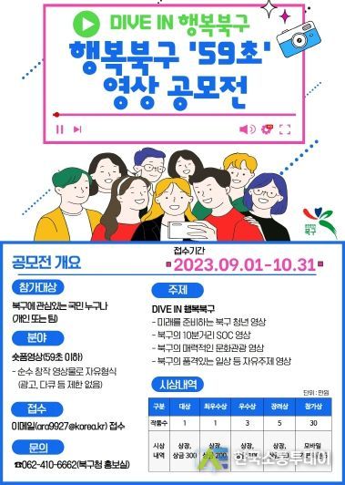 한국소통투데이 관리자 기자 | 광주시 북구가 북구의 매력을 전국에 알리기 위해 ‘행복북구 59초 영상’을 공모한다고 27일 밝혔다.