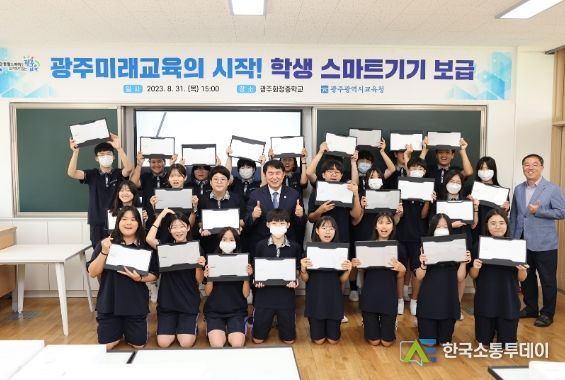 한국소통투데이 관리자 기자 | 광주시교육청이 31일 광주화정중학교에서 올해 보급이 시작된 중·고등학교 교육용 태블릿 PC 등 스마트기기 전달식을 실시했다고 밝혔다.