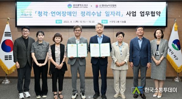 서구는 7일 오전 서구청 나눔홀에서 (사)한국농아인협회 광주광역시 서구지회와 ‘소확행 수납 인테리어사업’ 업무협약을 체결했다.