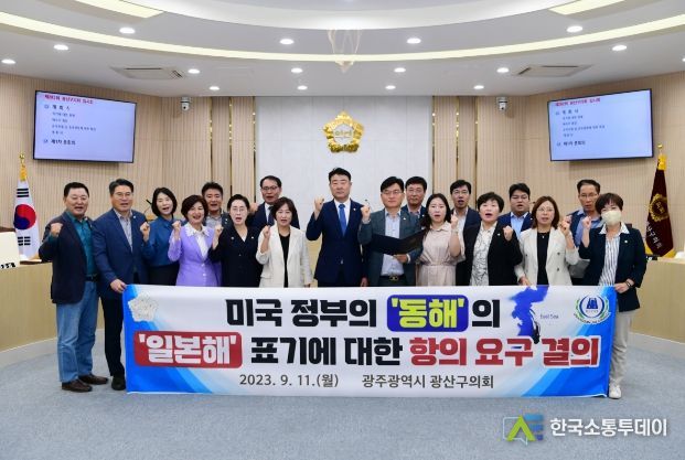 한국소통투데이 관리자 기자 | 광산구의회가 11일 제282회 임시회 제1차 본회의에서 공병철 의원(더불어민주당, 신흥동·우산동·월곡1·2동·운남동)이 대표발의한 ‘동해(East Sea)의 일본해(Sea of Japan) 표기 항의 요구 결의안’을 채택했다.