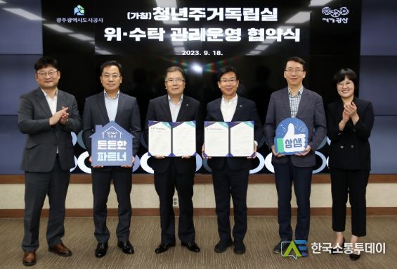 광산구는 18일 구청 2층 상황실에서 광주도시공사와 (가칭)‘청년주거독립실' 사업 추진을 위한 위·수탁 관리 운영 협약을 체결했다.