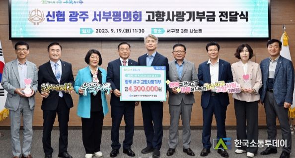 한국소통투데이 관리자 기자 | 광주광역시 서구는 19일 서구청 나눔홀에서 신협광주 서부평의회 조합 임직원으로부터 고향사랑기부금 430만원을 기탁받았다.