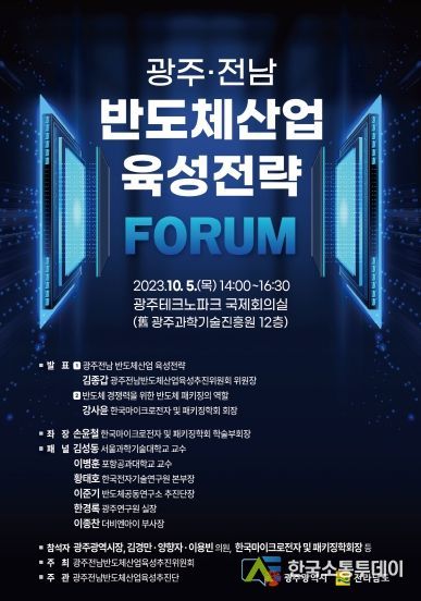 한국소통투데이 관리자 기자 | 광주광역시는 오는 10월5일 오후 2시 광주테크노파크 국제회의실에서 ‘광주·전남 반도체산업 육성전략 포럼’을 개최한다.