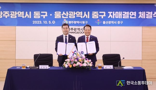 한국소통투데이 관리자 기자 | 광주 동구는 지난 5일 동구청에서 울산광역시 중구와 상호협력 및 상생발전을 위한 자매결연 협약식을 가졌다고 밝혔다.