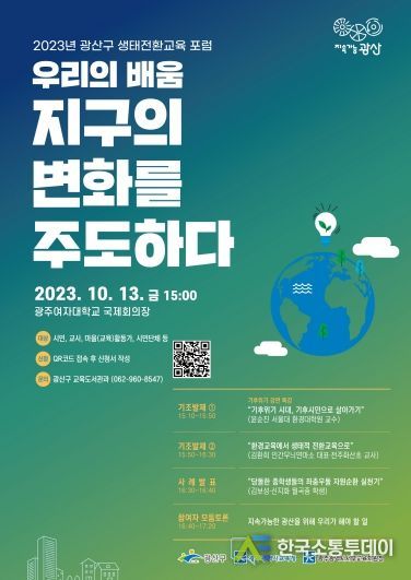 한국소통투데이 관리자 기자 | 광주 광산구는 13일 오후 3시 광주여자대학교 국제회의장에서 ‘2023년 광산구 생태전환교육 포럼’을 개최한다고 밝혔다.