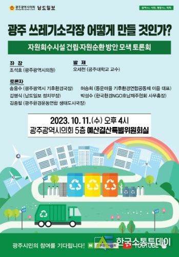 남도일보와 광주광역시의회가 11일 오후 4시 시의회 5층 예산결산특별위원회 회의실에서 포화상태에 다다른 지역 쓰레기 매립장의 대안책으로 떠오른 신규 쓰레기소각장의 효과적인 건립에 대해 논의하는 정책토론회를 개최한다고 10일 밝혔다.