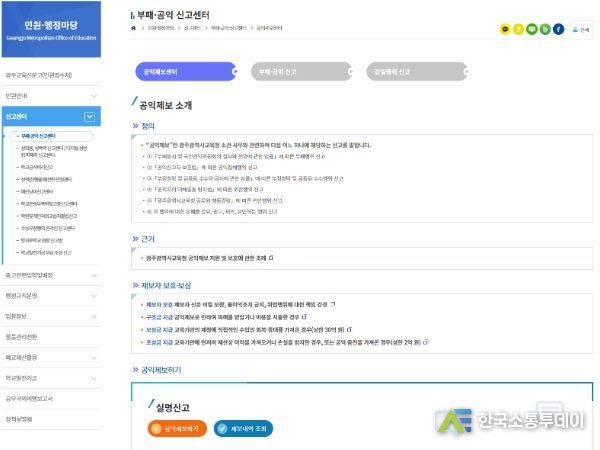 한국소통투데이 관리자 기자 | 광주시교육청이 11일 시민들의 공익제보 활성화를 위해 시교육청 누리집에 ‘온라인 공익제보센터’를 개설·운영한다고 밝혔다.