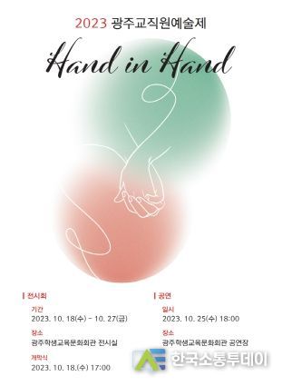 20일 시교육청에 따르면 이번 교직원 예술제는 교육 가족 모두가 서로의 마음을 헤아리며 따뜻한 손을 잡고 회복해 나가자는 의미들 담아 마련됐다. 오는 27일까지 운영되며 특히 25일에는 교직원문화예술동아리 중심으로 공연 행사가 진행될 예정이다.