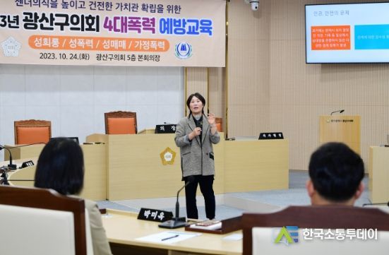한국소통투데이 관리자 기자 | 광산구의회가 24일 의원 및 사무국 직원을 대상으로 ‘4대 폭력 예방 교육’을 진행했다.