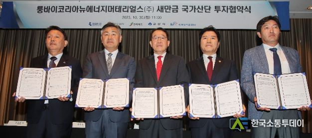한국소통투데이 관리자 기자 | 새만금개발청과 전라북도․군산시․한국농어촌공사는 10월 30일 이차전지 글로벌 기업 룽바이사(社)가 단독 투자 설립한 룽바이코리아뉴에너지머테리얼스㈜(이하 ‘룽바이코리아’)와 ‘전구체 및 황산염 생산공장’ 건립을 위한 투자협약(MOU)을 체결했다고 밝혔다.