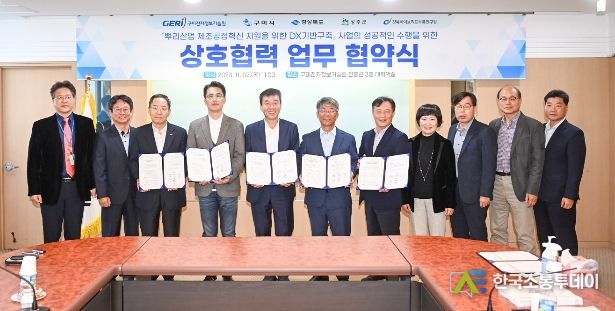 한국소통투데이 관리자 기자 | 구미시는 2일 경상북도, 성주군, 구미전자정보기술원, 경북하이브리드부품연구원과 '뿌리산업 제조공정혁신 지원을 위한 DX 기반구축 사업'의 성공적인 추진을 위한 업무협약을 체결했다.