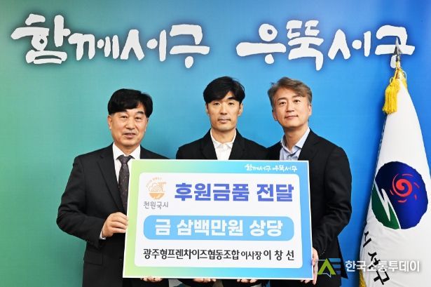 한국소통투데이 관리자 기자 | 광주광역시 서구는 3일 광주형프랜차이즈협동조합(이사장 이창선)으로부터 ‘천원국시’ 활성화를 위한 지정기탁금으로 300만원 상당의 금품을 받았다.