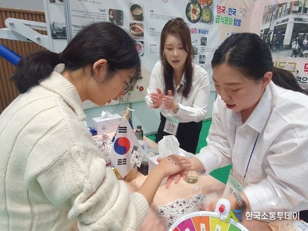 이날 행사에서 경산교육지원청은 'K-급식 영국속으로!'라는 주제로 급식박람회 부스를 운영했다. 영국과 한국의 차(tea)와 급식문화를 비교함으로써 세계 식문화를 간접 체험해볼 수 있는 시간이었다. 특히 식판에 한상 차려진 음식 모형은 실물을 그대로 구현해 학생들과 학부모들의 눈길을 끌었다. 체험코너로는 한국과 영국의 국기를 활용한 타투 붙이기, 전통간식(약과, 스콘)과 전통음료(식혜, 홍차) 맛보기 등을 운영했다.