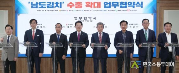 한국소통투데이 관리자 기자 | 전라남도와 해남군, 영암군은 희창물산(주), 동진무역, 지중해영농조합, ㈜왕인식품, 지앤티웨이와 6일 도청에서 북미지역 남도 김치 수출 확대를 위한 업무협약을 했다.
