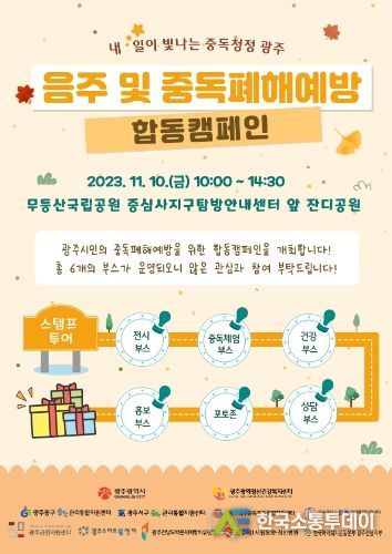 한국소통투데이 관리자 기자 | 광주광역시는 오는 10일 무등산국립공원 증심사지구 탐방안내센터 앞 잔디공원에서 ‘음주 및 중독 폐해 예방 유관기관 합동캠페인’을 진행한다.