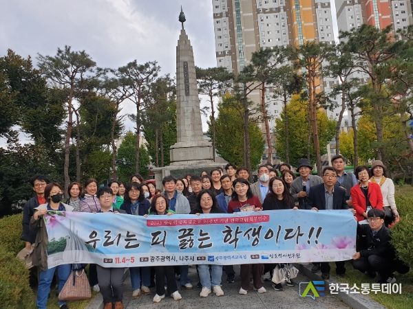 한국소통투데이 관리자 기자 | 광주시교육청이 제94주년 학생독립운동기념일을 맞아 지난 4~5일 광주·나주 학생독립운동 사적을 중심으로 전국 교원 38명이 참여한 ‘학생독립운동 정신계승 직무연수’를 실시했다.