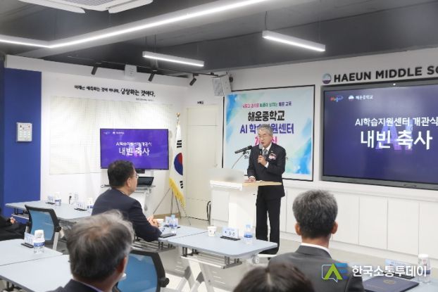 한국소통투데이 관리자 기자 | 해운중학교는 2023년 11월 8일에 ‘인공지능(AI)학습지원센터’를 개관했다. 지역교육현안사업으로 추진된 ‘AI학습지원센터’는 지난 3월부터 설계용역을 진행하고 8월에 완공하여 학교 교육 과정 활동에 활용하고 있는 중이다.
