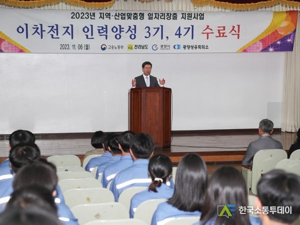 수료식에 참석한 정인화 광양시장은 “치열한 경쟁률을 뚫고 들어온 이차전지 채용약정형 인력양성 교육에 열정적인 태도로 참여하여 수료한 것을 진심으로 축하드린다”며 “앞으로도 광양시 청년들에게 소득 걱정 없는 ‘안심’과 일상 속 인프라에 대한 ‘만족’을 주기 위해 최선을 다하겠다”고 말했다.