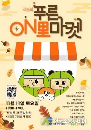 한국소통투데이 관리자 기자 | 광주 동구는 오는 11일 오전 11시부터 오후 5시까지 계림동 푸른길 광장 일원에서 ‘제5회 푸른온리(ON里)마켓’을 개최한다고 밝혔다.