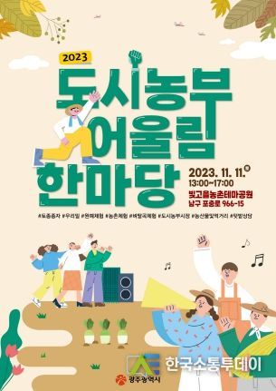 한국소통투데이 관리자 기자 | 광주광역시는 11일 오후 1~5시 남구 빛고을농촌테마공원에서 ‘2023년 도시농부 어울림 한마당’을 개최한다.