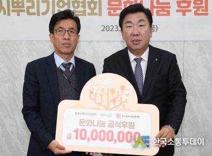 이날 청주시뿌리기업협회는 문화소외계층 지원 및 문화예술 활성화를 위해 써달라며 ‘청주문화나눔’에 1천만 원의 후원금을 기탁했다.