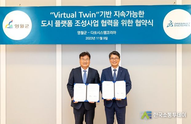 한국소통투데이 관리자 기자 | 강원특별자치도 영월군과 3D 익스피리언스로 산업을 혁신하는 다쏘시스템이 지난 11월 9일 “버추얼 트윈 기반 지속가능한 도시 플랫폼 조성사업”을 위한 MOU를 체결했다.