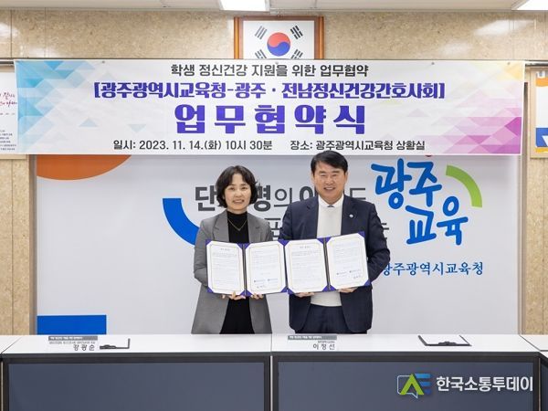 한국소통투데이 관리자 기자 | 광주시교육청이 지난 14일 본청 상황실에서 대한간호협회 정신간호사회 광주전남지회와 광주학생 정신건강 지원을 위한 협약식을 진행했다.