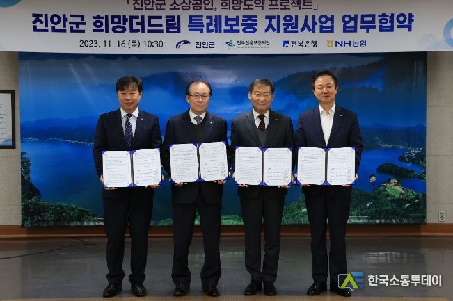 한국소통투데이 관리자 기자 | 진안군은 16일 군청 상황실에서 전북신용보증재단-전북은행-NH농협은행과 함께 관내 소상공인 자금지원을 위한 특례보증 협약식을 개최했다.