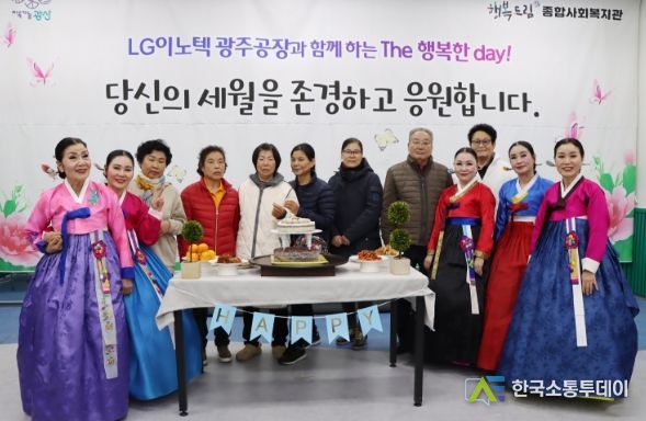 행사에는 LG이노텍 광주공장 임직원이 참여해 어르신 50여 명에게 푸짐한 생일상을 제공했다.