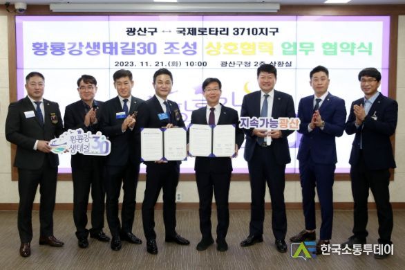 한국소통투데이 관리자 기자 | 광주 광산구가 21일 비영리 봉사단체인 국제로타리 3710지구(총재 조형준)와 ‘황룡강생태길30 조성 상호협력’ 업무협약을 체결했다.