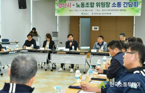 한국소통투데이 관리자 기자 | 경산시는 20일 경산시 근로자복지회관에서 건강한 노동문화 조성과 근로자들과의 소통을 위한 자리로 지역 노동조합 위원장들과의 간담회를 가졌다.