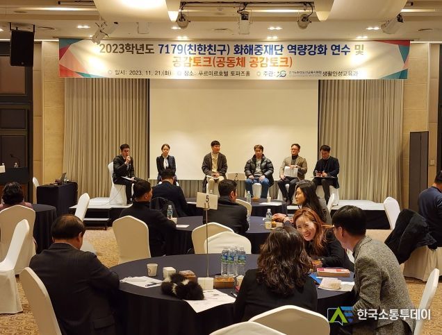 한국소통투데이 관리자 기자 | 경기도화성오산교육지원청은 2023년 11월 21일 푸르미르 호텔에서 2023학년도 화성오산 7179(친한친구) 화해중재단 중재위원과 희망 교원 58명을 대상으로 화해중재 역량 강화 연수 및 공감토크를 진행했다.