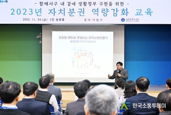 한국소통투데이 관리자 기자 | 광주광역시 서구는 팀장급(6급) 공무원 170여 명을 대상으로 지난 13일부터 24일까지 3차례에 걸쳐 서구청 들불홀에서 자치분권 역량강화 교육을 진행했다.