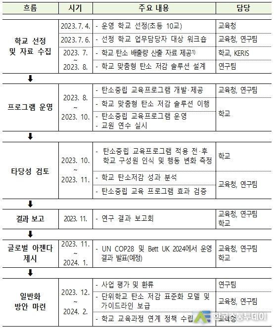서울시교육청은 2023 탄소제로실천 선도학교운영 결과를 바탕으로 학교 탄소저감 표준화 모델 개발 및 가이드라인을 구축하고, 이를 모든 학교로 확대 적용하여 2050 학교 탄소중립견인과 더 나아가 생태전환교육에 대한 글로벌 아젠다를 제시할 예정이다.