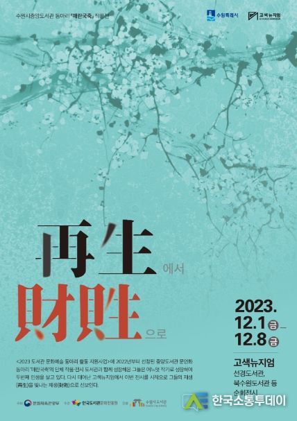 한국소통투데이 관리자 기자 | 수원시 중앙도서관이 12월 8일까지 고색뉴지엄 지하 1층 기획전시실에서 문인화동아리 매란국죽의 작품전 ‘재생(再生)에서 재생(財貹)으로’를 연다.