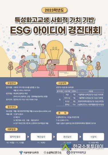 한국소통투데이 관리자 기자 | 서울특별시교육청은 ‘특성화고 학생 사회적 가치 아이디어 경진대회’시상식을 12월 8일 오후 4시 서울시교육청 11층 강당에서 개최한다.