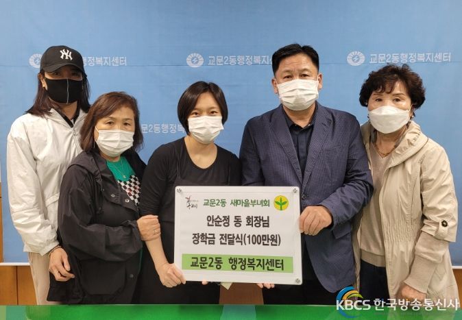 한국방송통신사 관리자 기자 | 구리시 교문2동은 6일 교문2동 새마을부녀회 故안순정회장 유가족으로부터 저소득 학생들을 위한 장학금 1백만원을 전달받았다.